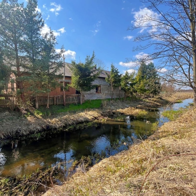 Dom nad rzeką w otoczeniu lasów