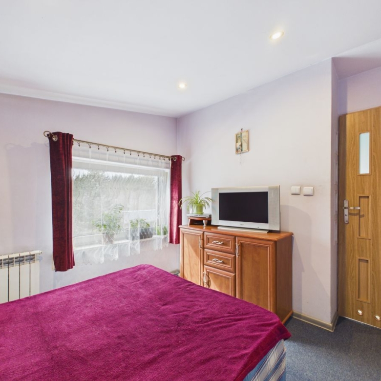 Biuro nieruchomości CZESTATE prezentuje wolnostojący dom w Aleksandrii.Jeżeli szukasz domu w spokojnej lokalizacji, blisko lasu, dobrze skomunikowane miejsce ma dla Ciebie znaczenie, chcesz uciec z bloku, ale boisz się wysokich kosztów utrzymania.Ta oferta jest właśnie dla Ciebie!Na dwóch kondygnacjach znajdziesz: parter: przestronny salon z jadalnią (serce domu), kuchnię oraz łazienkę z prysznicem, piętro: 3 ustawne sypialnie (w tym jedna z prywatną łazienką z wanną narożną). Do zdecydowanych atutów należą: dom w cenie mieszkania – zyskujesz