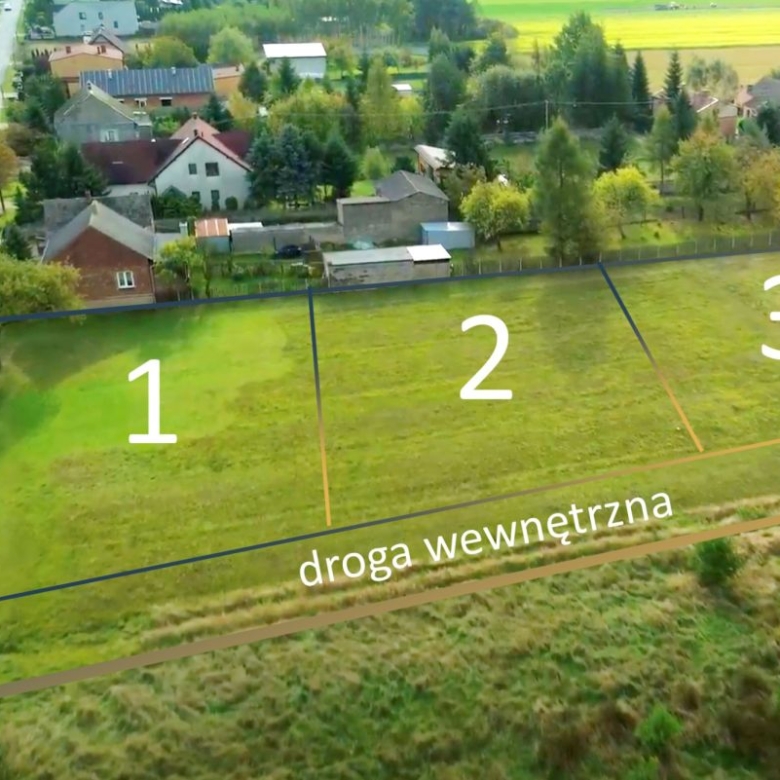 Powierzchnia: około 1050 m2 (wydzielona z większej, w trakcie podziału geodezyjnego na zdjęciu oznaczona numerem 1)