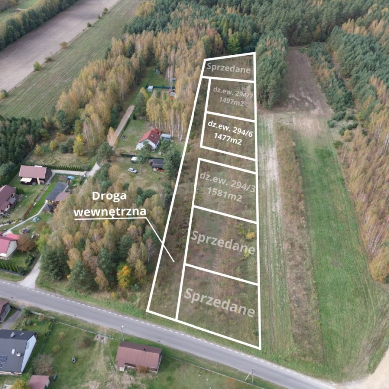 Przedmiotem oferty jest działka o numerze ewidencyjnym 294/6 (obręb Nowa Wieś) o powierzchni około 1477m2, wym. ok. 36x41m.