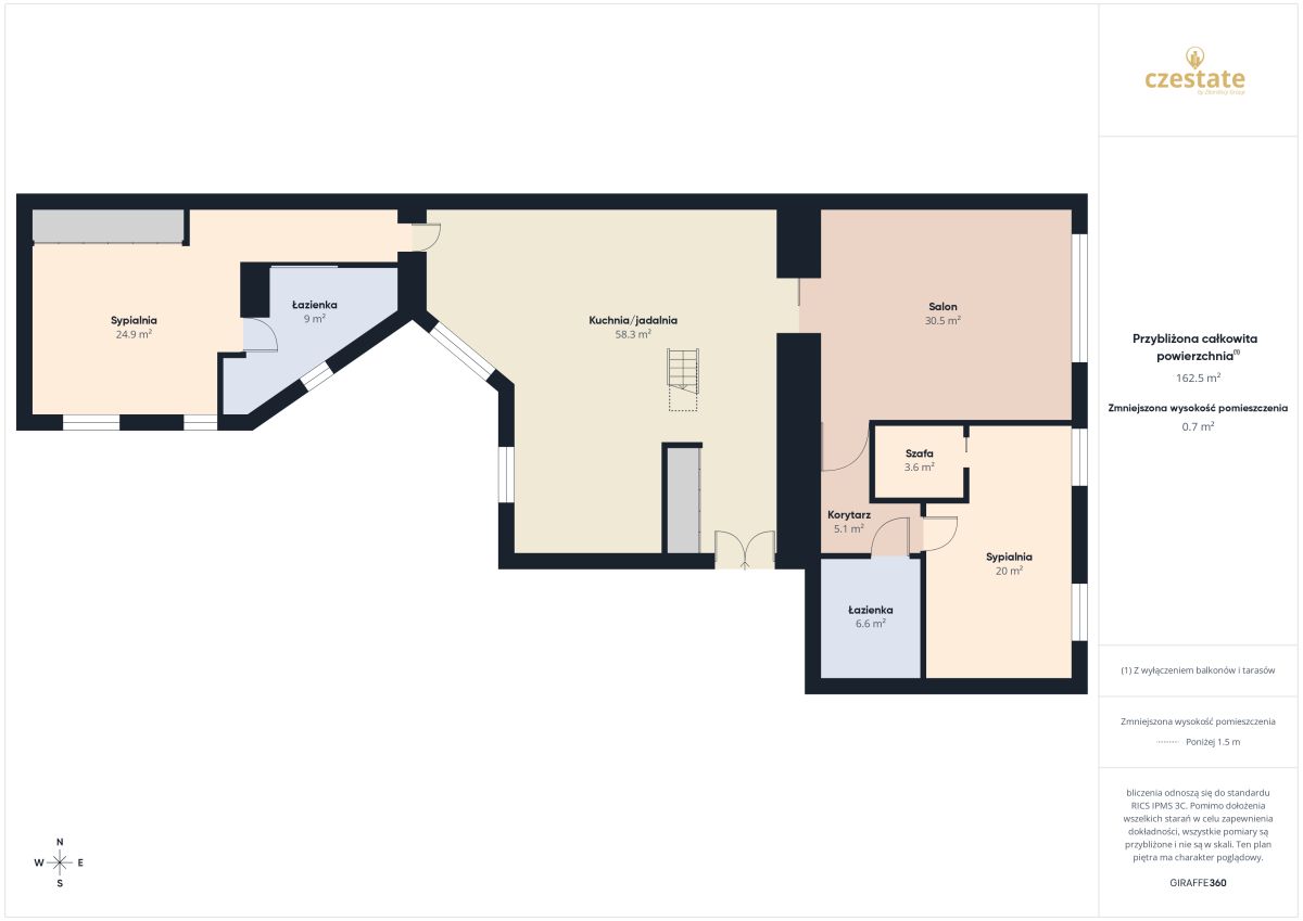 Biuro nieruchomości CZESTATE prezentuje wyjątkowy apartament o powierzchni użytkowej 173 m², usytuowany na 2. – jednocześnie ostatnim – piętrze kamienicy przy ul. Dąbrowskiego 9 w Częstochowie. Już sam adres mówi wiele – ścisłe centrum miasta, a jednocześnie poczucie prywatności, którego próżno szukać w nowych inwestycjach.Z balkonu rozpościera się widok na ul. Dąbrowskiego oraz Plac Biegańskiego, co podkreśla miejski, elegancki charakter tej nieruchomości.Apartament został zaprojektowany z myślą o wygodnym życiu i funkcjonalności:- przestronny, doskonale doświetlony salon z